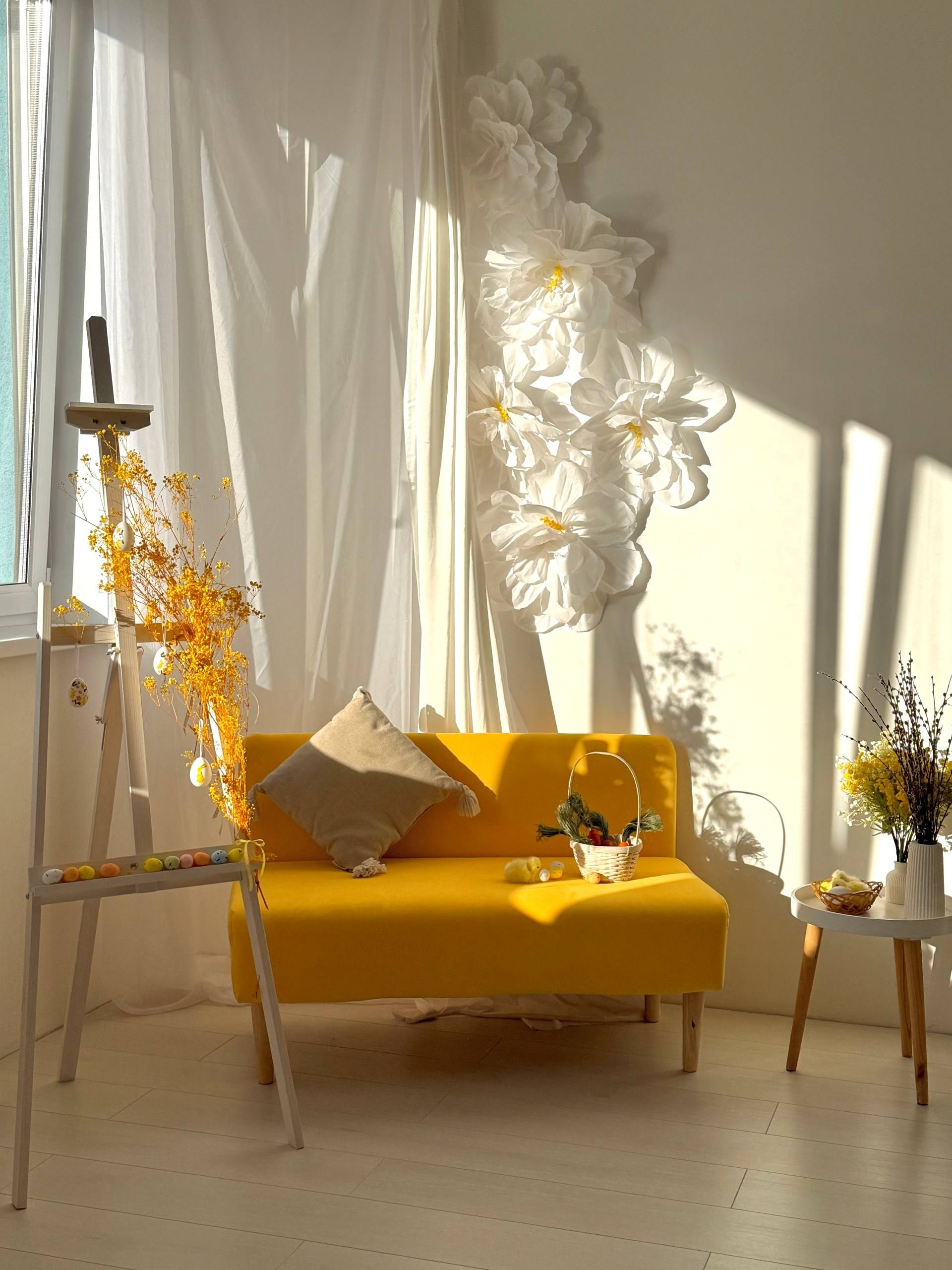 Съемка в двух локациях студии: реалистичный 3Д фон тематический с реквизитом, локация с мольбертом, цветами, пасхальным столом.
